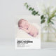 Minimalistisk Baby Fotofödelsedeklaration Postkort Meddelande Vykort