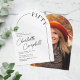 Upptäck enkelhetens elegans med våra minimalistiska 50-årsfirande-inbjudningar. Med en skarp vit bakgrund, chic bågform, tidlös serif-teckensnitt och en anpassningsbar textmall är dessa inbjudningar en stilren hälsning till den femtioårige. På baksidan har du möjlighet att inkludera (eller utesluta) ett foto av födelsedagsbarnet för att ge det en personlig touch. Fira milstolpen med stil, sofistikation och en nypa personlig charm.