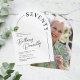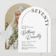 Upptäck enkelhetens elegans med våra minimalistiska 70-årsfirande-inbjudningar. Med en krispig vit bakgrund, chic bågform, tidlös serif-teckensnitt och en anpassningsbar textmall är dessa inbjudningar en stilren hälsning till den 70-årige firaren. På baksidan har du möjlighet att inkludera (eller utesluta) ett foto av födelsedagsbarnet för att ge det en personlig touch. Fira milstolpen med stil, sofistikation och en nypa personlig charm.