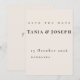 Minimalistiskt beige spara datum-kort med en ren och elegant design. Perfekt för moderna bröllop, med mjuka neutrala toner och en tidlös lyxig känsla. Lätt att anpassa med era namn, datum och plats.