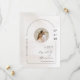 Ren och modern beskrivning av den här minimalistiska bågdesignen, ett enkelt skript Spara meddelandet om datum bröllop-kortet, som backas upp med en neutralt färg tvättar och innehåller ett pars foto. Du kan enkelt anpassa den med ditt namn, datum och bild för att göra den till din egen.