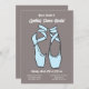 Denna klassiskt enkla design har spetsiga balettskor i mjukt babyblått med en kompletterande taupebakgrund. All text kan anpassas efter dina önskemål.
