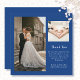 Minimalistisk blå vit Blommigt - foto QR-kod Bröll Inbjudningar