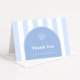 Elegant och återhållsamt kusttema för tackkort med utrymme för ett foto (det är dock inte nödvändigt att lägga till ett foto). Alla färger (ränder, bakgrundsvalv, ikoner och förstås typsnittsfärger) kan redigeras av dig inifrån designverktyget.
