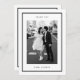 Ett modernt svartvitt tack för bröllop med ett minimalistiskt kort. Med ett fet svart ram, ren typografi och en fullt-fotolayout skapar det ett sätt att tacka dina gäster på eleganten samtidigt som det ser tidlöst och snyggt ut. Baksidan innehåller ett hjärtligt tacksamhetsbudskap som kan vara personlig eller ersättas med ditt eget ord.