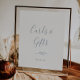 Denna minimalistiska dammiga blåa kort och present-tecken är perfekt för ett elegant bröllop eller bröllopsfest. Designen har en enkel grönsilhuett i ljust skifferblå med klassisk minimalistisk stil. Textraden längst ner på skylten kan anpassas med datumet, brudens och brudgummens namn eller ett kort meddelande som "Tack". Denna skylt kan användas för ett bröllop eller någon annan händelse eller fest.