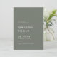 Lägg märke till din speciella dag med elegans och enkelhet med detta minimalistiska Spara datumkortet med skarpa vita sans serif typsnitt över en chic av olivbaksida av grått. Blanda och matcha med koordinera delar för en kohesiv inbjudningssvit. Skapa tidslösa minnen med denna mångsidiga design. Beställ nu en sofistikerad beröring till era bröllop-förberedelser!