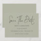 Grönten Spara Bleken för minimal skriptöverföring sparar datumet. Enkel elegans med Spara datum i ett modernt set skript.Resten av texten som du enkelt kan anpassa.Visar här i svart på mjuk grönt Sidera, men färgen text och bakgrund kan ändras om du vill genom att anpassa ytterligare alternativ.