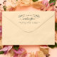 Bröllop gummi frimärke har handritade blommigtar i chic överst med "FRAMTIDA MR. & MRS." böjda över överkanten av din familj namn som visas i ett handskrivet typsnitt. Returadressen visas i en modern minimalistisk typografi. Du kan anpassa den här designen genom att klicka på "Anpassa den här mallen" och ersätta texten med din. Perfekt för grönt eller naturen kallat bröllop!