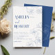 Minimalistisk blommigt och botaniskt blått Bröllop Inbjudningar