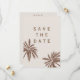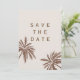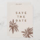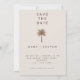 Minimalistisk bohemisk beige palmtreebröllop spara datumet