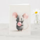 Boho-stil minimalistisk konst av en mus med en rosa ballong. Tom julkort för födelsedag, årsdag, ny baby, tack etc.