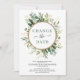 Uppdatera dina gäster med detaljerna för ditt uppskjutna evenemang med denna moderna botaniska inbjudan med vacker akvarell eukalyptus grönska och elegant bokstavsstil