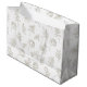 En delikat sömlös blommig presentmönsterpåse med eleganta linjekonstillustrationer av vilda blommor, bladrika stjälkar och små bärgrenar på en ren vit bakgrund. Denna minimalistiska botaniska design använder mjuka neutrala toner och fina konturer för att skapa en lugn, modern estetik.