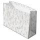 En delikat sömlös blommig presentmönsterpåse med eleganta linjekonstillustrationer av vilda blommor, bladrika stjälkar och små bärgrenar på en ren vit bakgrund. Denna minimalistiska botaniska design använder mjuka neutrala toner och fina konturer för att skapa en lugn, modern estetik.