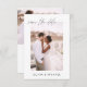 Bröllop spara datum-kort som har ett foto på framsidan och baksidan. Spara datumkorten innehåller en modern handskriven kursiv skripttypografi som är elegant, enkel och modern till använda efter att du har minimalistisk enkel bröllopsdag firande.