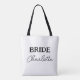 Denna stora budgetväska har brudens namn i elegant skrivstil. En modern minimalistisk design. För att redigera texten klickar du på knappen för personlig anpassning. Kom ihåg att redigera båda sidor.