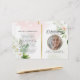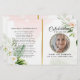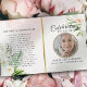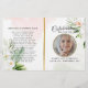 Anpassa det här moderna begravningsprogrammet för elegant med eget foto och egen text för att skapa en speciell hyllning till ditt barn. Ett 'In Loving Memory'-program med Blommigt Foliage botanical and guld accent Memorial Program. På framsidan finns ett foto av din älskade, deras namn, data, minnesplatsen och evenemangets datum. På insidan finns en obituär serviceordning, och på baksidan finns ett tackkort, och på butikens plats finns också andra konstruktioner som erbjuder botaniskt grönt med ro och löv design och glitter/gyllene accents och Eucalyptus foliage för att uppfylla alla krav.
