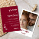 Den minimalistiska invigningen av Burgundy Foliage Motif Bröllop i stil är enkel, modern och minimalistisk, en bröllopsinbjudan till burgundisk färgad med löstagbar böjd bladmotif. Baksidan av inbjudan innehåller ett foto av paret.