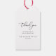 De här minimalistiska bröllop-tacken för chic i klassrummen som du föredrar är perfekt för en girig bröllopsmottagning. Den enkla och elegant designen har skript av typen klassisk och finare i svartvitt. Anpassa dessa märkre med ett kort-meddelande, ditt namn och ditt bröllop-datum. Du kan hur som helst ändra ordalydelsen på dessa märkre till kostym.
