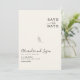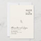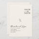 Ett minimalistiskt svartvitt med ett sofistikerat namnteckning skript som accentueras med en botanisk andedräkt mot en bakgrund av elfenben färg. Ett standout Save the Date bröllop-meddelande med QR-kodens förmåga som passar bra ihop med de flesta moderna bröllop-platser.