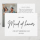 Jag vill uttrycka min tacksamhet med vår minimalistiska Chic till inbjudan till Bröllopsdagen i Maid of honor. Den här fina inbjudan har en ren design med elegant typografi, perfekt för att förmedla ditt hjärtliga budskap på ett snyggt och sofistikerat sätt. Den minimalistiska estetik som gör att ord kan gå i centrum, skapar det ett minnesvärt sätt att be Maid of honor att spela en speciell roll på er stora dag. Anpassa den med dina uppgifter om bröllop och en personlig kommentar för att göra den verkligt unik. För anpassad design och mer möhippa, kontakta oss eller följ oss för de senaste uppdateringarna.