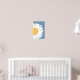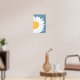 En modern abstrakt väggkonst med en stiliserad tusensköna med en djärv gul mitt och rena vita kronblad mot en dämpad blå bakgrund. Dess minimalistiska design och fräscha färgpalett gör den till en perfekt accent för moderna interiörer, och lägger till en touch av naturinspirerad elegans till alla utrymmen.