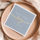 Enkla, minimala, moderna kalligrafiska dukar, eleganta dammiga blå bröllopsservetter med romantisk gul repsnöre hjärta.