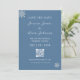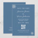 Sätt tonen för din vinterbröllop med dessa moderna, eleganta och minimalistiska dammiga blå och vita "spara datum"-kort. Med diskreta silverfärgade snöflingaccents och en mjuk blå bakgrund ger de en touch av frostig charm till din underrättelse. Dessa kort är perfekta för att låta dina gäster veta datum, plats och eventuella initiala detaljer om din speciella dag. Dessutom kan dina gäster med en praktisk QR-kod enkelt komma åt din bröllopswebbplats för mer information. Anpassa dem med dina unika detaljer för att skapa ett vackert minne. Behöver du hjälp med anpassningen? Klicka på meddelandeknappen nedan – jag hjälper dig gärna!