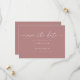 Denna spara-datum-kort har en dammig rosafärgad bakgrund med romantisk, tryckt skrift och en ren minimalistisk layout. Den eleganta typografin håller fokus på parets namn och bröllopsdatum för ett tidlöst tillkännagivande. Baksidan har utrymme för en QR-kod som länkar gästerna direkt till bröllopswebbplatsen för detaljer och reseinformation. Perfekt för par som planerar en dammig rosa, rosafärgad eller modernt romantisk bröllopsstil.