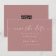 Den här save the date-kortet har en dammig rosafärgad bakgrund med romantiska, skrivna bokstäver och en ren minimalistisk layout. Den eleganta typografin håller fokus på parets namn och bröllopsdatum för ett tidlöst tillkännagivande. Baksidan har utrymme för en QR-kod som länkar gästerna direkt till bröllopswebbplatsen för detaljer och reseinformation. Perfekt för par som planerar en dammig rosa, rosablommig eller modernt romantisk bröllopsstil.