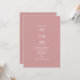 En modern minimalistisk design med ditt speciella datum och bröllopsdetaljer i klassisk, chic typografi på en dammig rosabakgrund. Med all din speciella bröllopsdagsinformation på baksidan, inklusive din RSVP, boende och ytterligare detaljer. Designad av Thisisnotme©