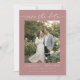 Denna spara-datum-kort har en dammig rosabakgrund, romantisk, tryckt text och ett stort förlovningsfoto för ett varmt och elegant bröllopsutskick. Den mjuka rosafärgen och minimalistiska layouten skapar ett tidlöst utseende som fungerar vackert för moderna romantiska bröllop. Perfekt för par som planerar ett rosafärgat eller dammigt rosabrun bröllopstema och som vill ha ett stilrent fotoutskick till familj och vänner. Den rena layouten håller fokus på paret samtidigt som de delar datum för bröllopet.