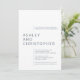Elegant enkel minimal bröllopsinbjudan med ren typografi och en djärv modern sammansättning. Utformningen har detaljer i bröllop som är justerade mot förskjutna marginaler, vilket markerar parets namn som ett isolerat textblock. Utformningen är borttagen från främmande ornamentering och prioriterar därmed funktionalitet, balans och harmoni. Perfekt för par som omfattar ytterst enkelhet, elegans och stil. Kortets baksida är lämnat tom med en solid färg-bakgrund. Design finns i ett markerat urval av modernt färg och är lätt att personlig. en kommentar och sök hjälp med att anpassa eller anpassa sig. Vi ser fram emot att höra från och arbeta med er!