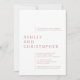 Elegant enkel minimal bröllopsinbjudan med ren typografi och en djärv modern sammansättning. Utformningen har detaljer i bröllop som är justerade mot förskjutna marginaler, vilket markerar parets namn som ett isolerat textblock. Utformningen är borttagen från främmande ornamentering och prioriterar därmed funktionalitet, balans och harmoni. Perfekt för par som omfattar ytterst enkelhet, elegans och stil. Kortets baksida är lämnat tom med en solid färg-bakgrund. Design finns i ett markerat urval av modernt färg och är lätt att personlig. en kommentar och sök hjälp med att anpassa eller anpassa sig. Vi ser fram emot att höra från och arbeta med er!