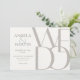 De enkla men djärva 7" x 5" bröllopsinbjudningarna har orden "We Do" i stora duvgrå bokstäver på en mycket ljus duvgrå bakgrund med mörkgrå och robin äggblå redigerbar platshållartext för brudparets förnamn, datum, tid, lokal, lokaladress med meddelandet längst ned, "mottagning följer".