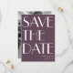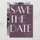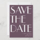 Minimalistisk Elegant Art Deco Bröllop spara datum i Eggplant och White med Photo on Back