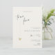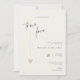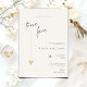 Denna minimalistiska och eleganta inbjudan är perfekt för ett modernt bröllop. Designen har ett handskrivet teckensnitt och modern minimalistisk design med ett gyllene hjärta. Du kan ändra namnen, bröllopsplatsen och datumet, och andra detaljer, klicka på «Personifiera».