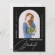 Modern solid black and white script studenten-meddelandekort med trendig arch form foto och elegant contemporary typografi.