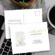 Elegant och minimalistisk flyttningsannons vykort med linjär botanisk krukväxtdesign och handskriven skrift. Ormplantan står i en attraktiv kruka, linje ritad i guld med vattenfärgspinselbakgrund. Det står "bästa önskningar från min nya hem" följt av ditt namn och nya adress. Du kan också lägga till ett personligt meddelande på baksidan.