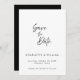 Ett minimalistiskt manuskort, bröllop spara datum. Datumkortet innehåller en skripttext för elegant med ett minimalt svartvitt tema. Anpassa texten med all information för din speciella dag.
