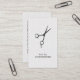 Modern elegant visitkortsmall med struktur vit bakgrund och mörk sax mönster. Perfekt för hårstilister, hårsaloner. Minimalistisk utformning och chic.
