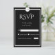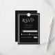 Det här minimalistiska eleganta svarta och vita bröllopssvarskortet har en ren typografi och en tidlös monokrom design, vilket gör det till det perfekta komplementet till en raffinerad bröllopsinbjudan. Idealiskt för klassiska, moderna och lyxiga bröllop, är detta svarskort helt anpassningsbart – så att du kan anpassa namn, svarsalternativ, datum och formulering för att matcha dina evenemangsuppgifter med lätthet.