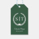 Förhöj dina bröllopsfavoriter med denna tidlösa lagerbladmonogram-gavetikett. Med en klassisk krans runt djärva initialer ger denna etikett en sofistikerad touch till alla tacksamma presenter, festfavoriter eller borddetaljer. Perfekt för eleganta, formella eller moderna bröllop, är det en stilren och mångsidig slutlig detalj som passar en mängd olika teman och dekorationsstilar. Anpassa bokstäverna, platsen och datumet för att göra det unikt till ditt.