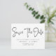 Elegant - enkelt svartvitt - förnyande sparar datumet på vykortet. Utformningsfunktioner för "spara datumet" i det moderna kalligrafiskriptet i djup svart färg på vit bakgrund. Lägg till ditt meddelande och mer information på baksidan. Alla reserverade Höger ©MSJ_DESIGNS