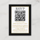 Modern minimalistisk enkel Bröllop OSA-kort med din QR-kod. Guld Ram. Svartvitt med Guld text.