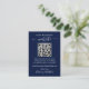 Modern, minimalistisk, enkelt höljeskort för Bröllop-webbplats med din QR-kod. Marinblå