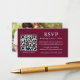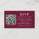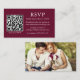 Modern minimalistisk enkel Bröllop OSA-kort med din QR-kod. Foto bakåt. Burgundy Background.
