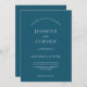En elegants minimalistisk, enkel och ren bröllopsinbjudan med teal bakgrund och vit text. Anpassa till din speciella dag.