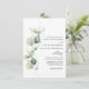 Skriptinbjudan för Eucalyptus Greenery Möhippa kan du enkelt redigera för bröllop och det är perfekt för en chic elegant bröllop. Med eukalyptus foliage och modern typografi på vit bakgrund. På motsatt sida finns en okänd bakgrundsbild av grönten med en boho- känsla